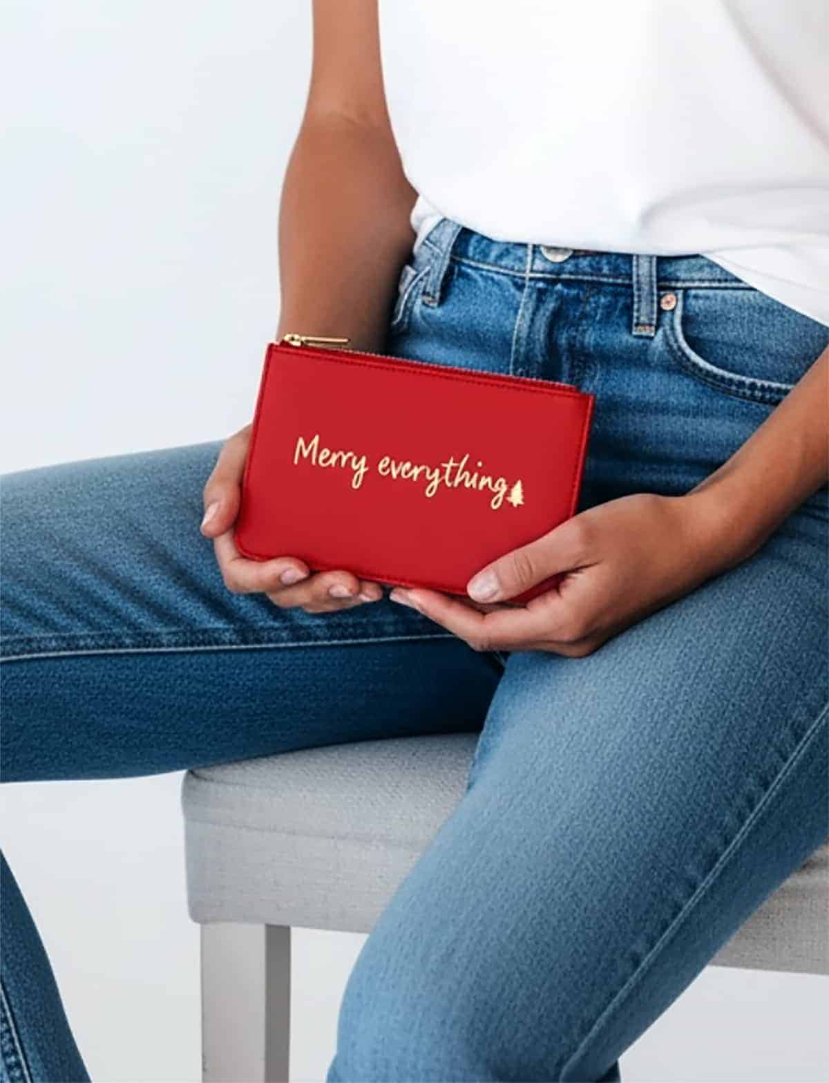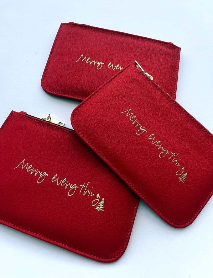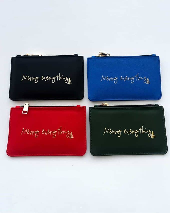 Crafted from leftover leather and printed in gold, BESPOKE XMAS EDITION, “MERRY EVERYTHING” handwritten note. Simple, open, and honest. It can hold cards, cash, a letter, small gifts… or a moment you don’t want to forget.