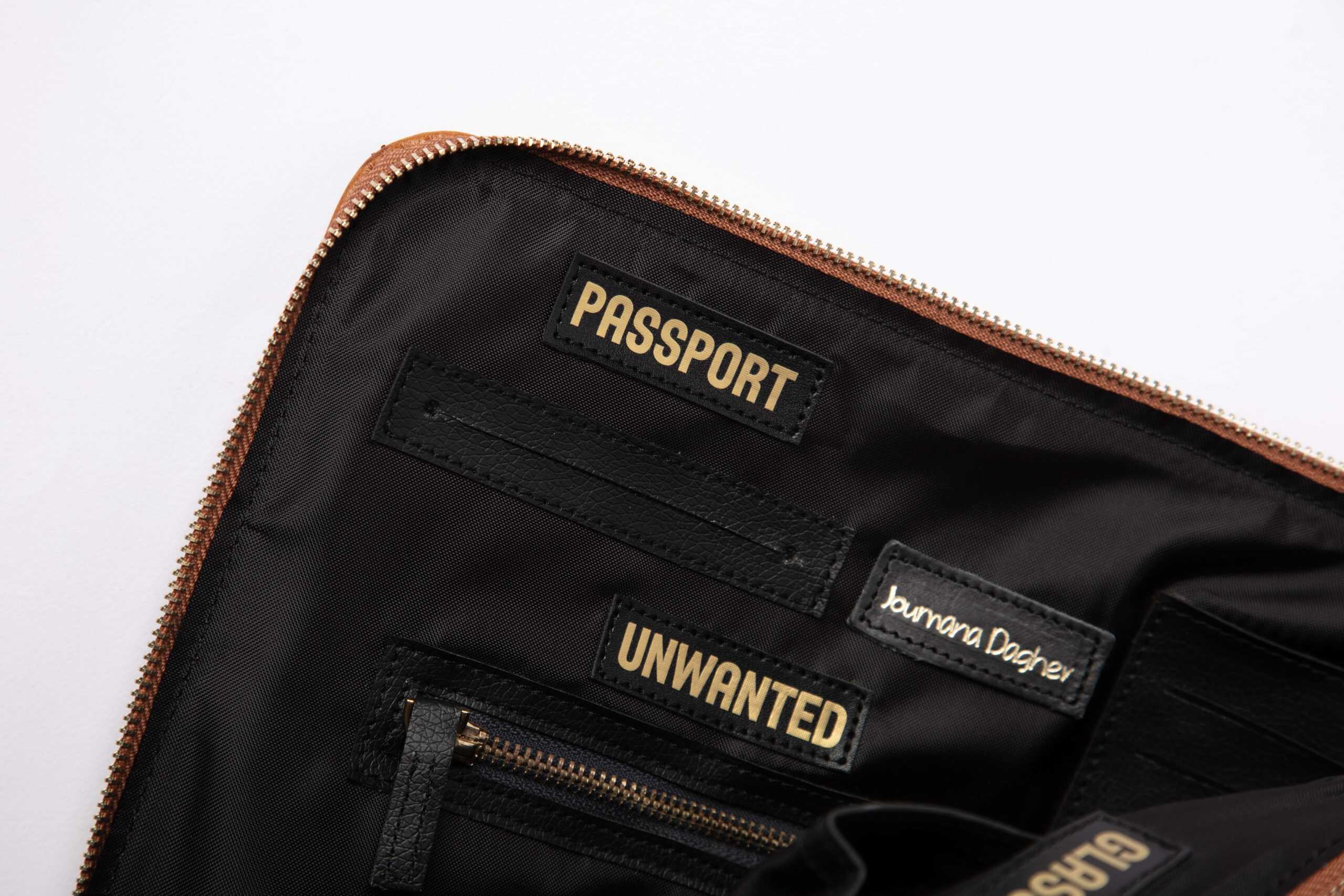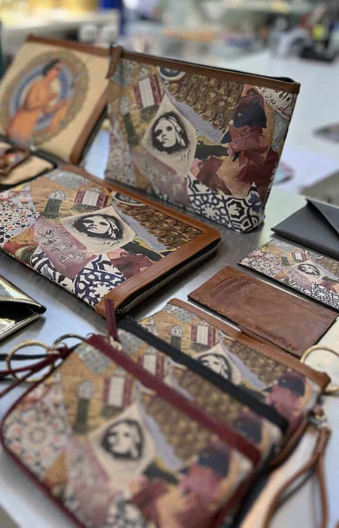 Each illustration was imagined in our studio, printed on our upcycled Durafabric (made from leftover sunscreen curtains), and finished with Italian leather. Lebanese artisans crafted every piece by hand giving history a new format: something you can carry.