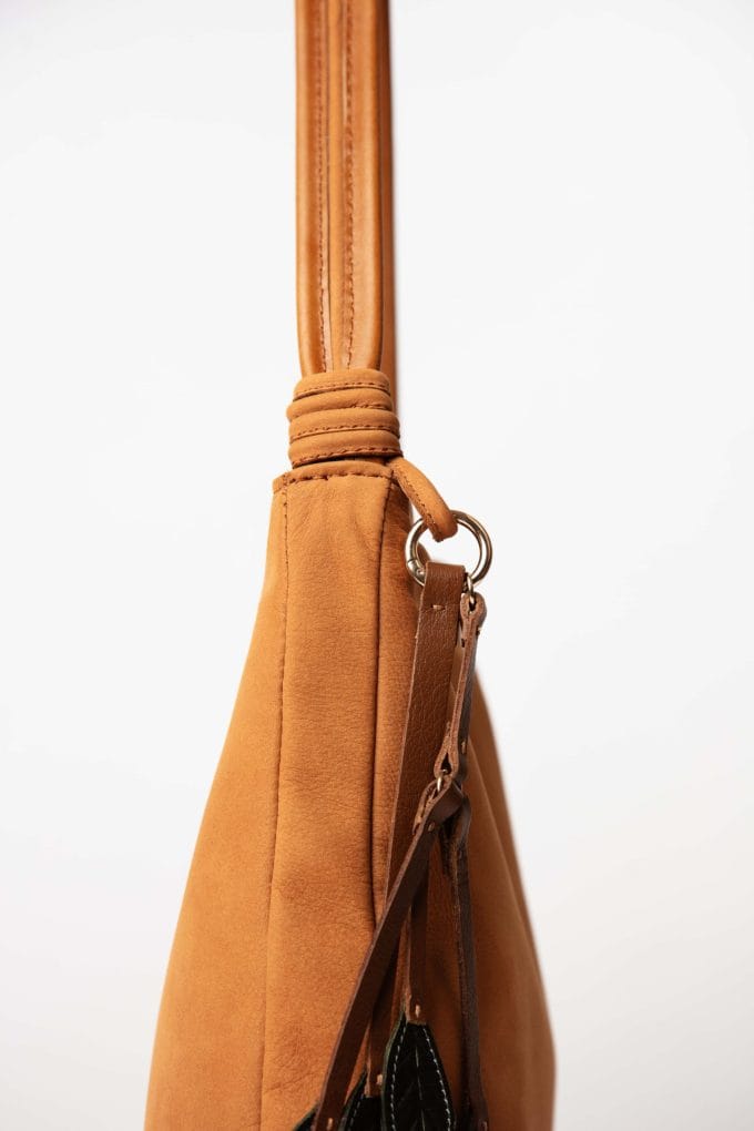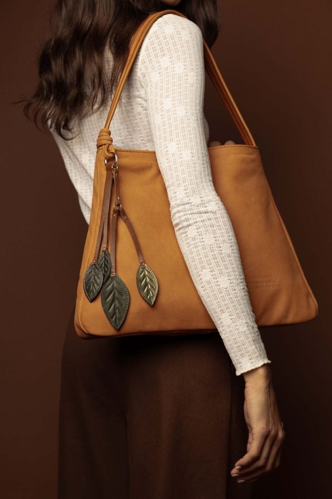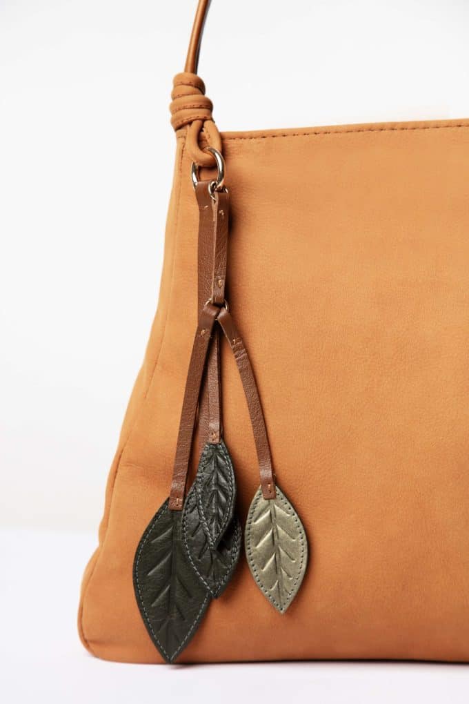 Bags, Caba, Shoulder bagsSoft nubuck leather bag with olive-leaf charms | minimal, timeless, and sustainably crafted in Lebanon.