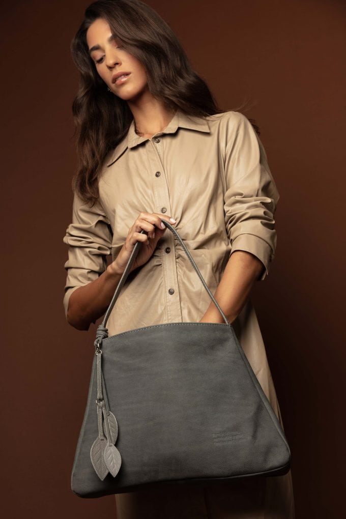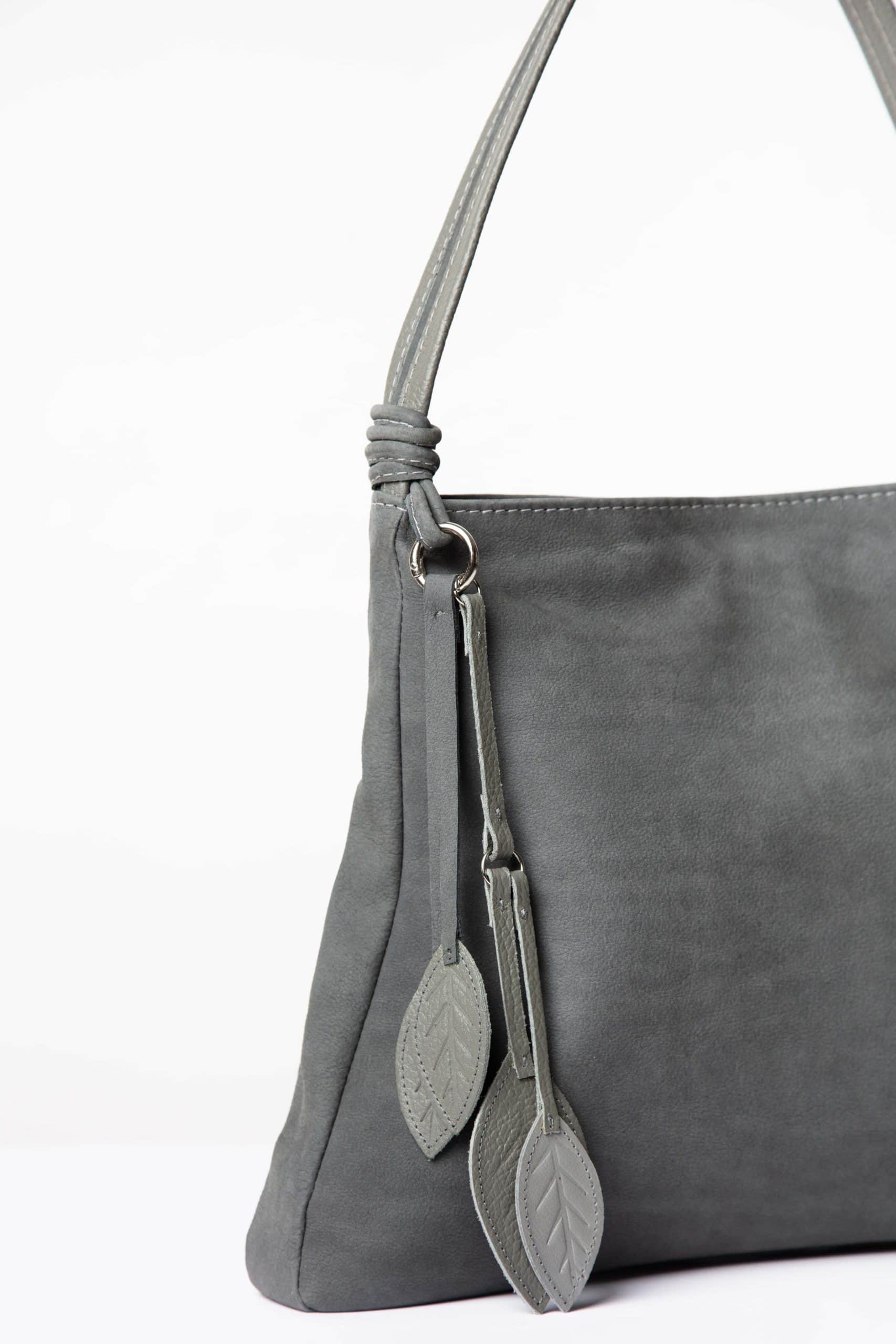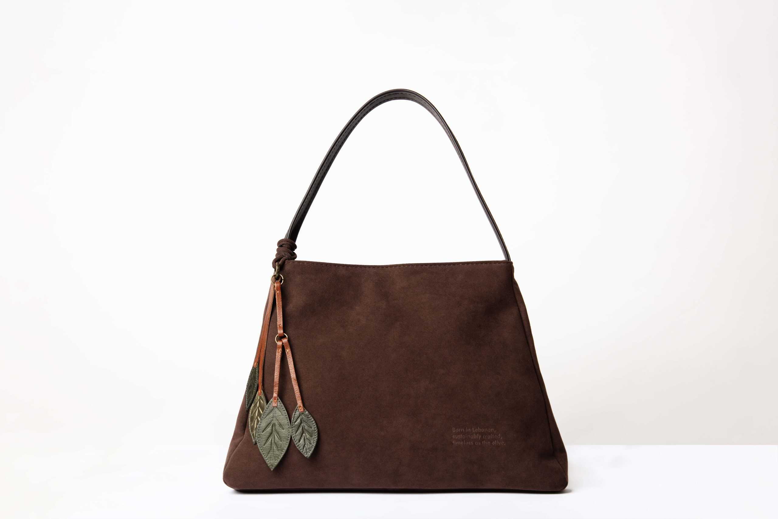 Bags, Caba, Shoulder bagsSoft nubuck leather bag with olive-leaf charms | minimal, timeless, and sustainably crafted in Lebanon.