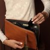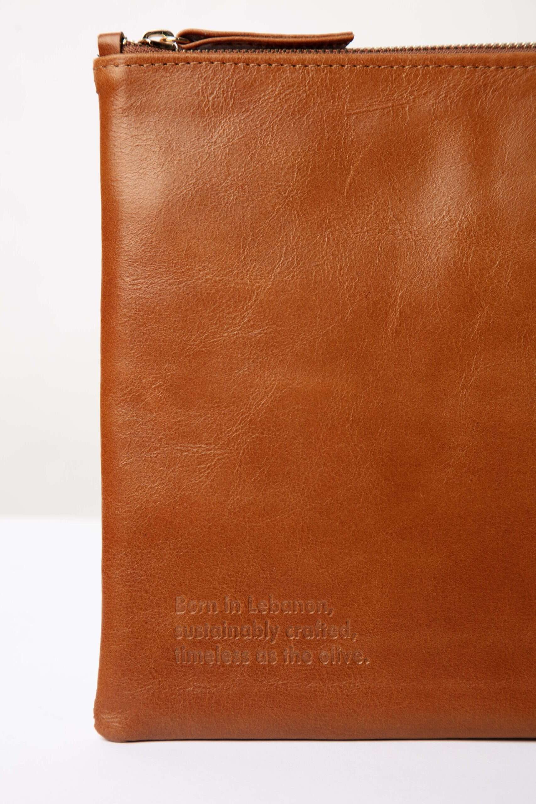Accessories, Bags, Clutches, OrganizersStructured organizer pouch in second-life Italian leather with labeled compartments and olive-leaf detailing.