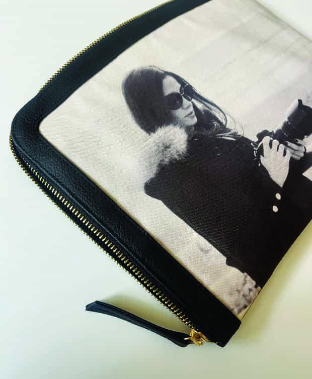 Custom organizer featuring your personal photo, includes compartments for everyday use: Phone, Glasses, Keys, Passport. Printed on upcycled Durafabric and finished with leather, it blends personalization and practicality with an artistic spirit.