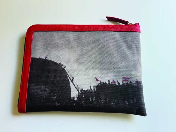 More than an organizer, this is your narrative, printed and carried. The exterior can be fully personalized with an image of your choice, while the interior is designed with labeled compartments for everyday use: Phone, Glasses, Keys, Passport. Printed on upcycled Durafabric and finished with leather, it blends personalization and practicality with an artistic spirit.