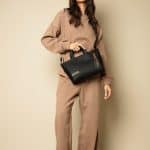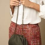 Made from second-life Italian leather combined with a textured mesh fabric sourced from surplus furnishing materials. Features the signature hidden copper mechanism that creates the gentle “tic-toc” sound. Finished with an antique-gold chain strap.