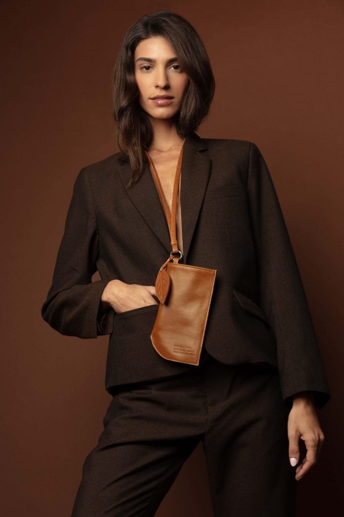 The Sienna Cellphone Pouch is simplicity refined, a sleek, hands-free essential for modern days. Handcrafted from leftover Italian leather, it holds your phone and small daily items with elegance and ease. Its slim silhouette and minimal stitching highlight the natural texture of the leather, while the olive-leaf charm pays tribute to the roots of Lebanese craftsmanship and sustainable design.
