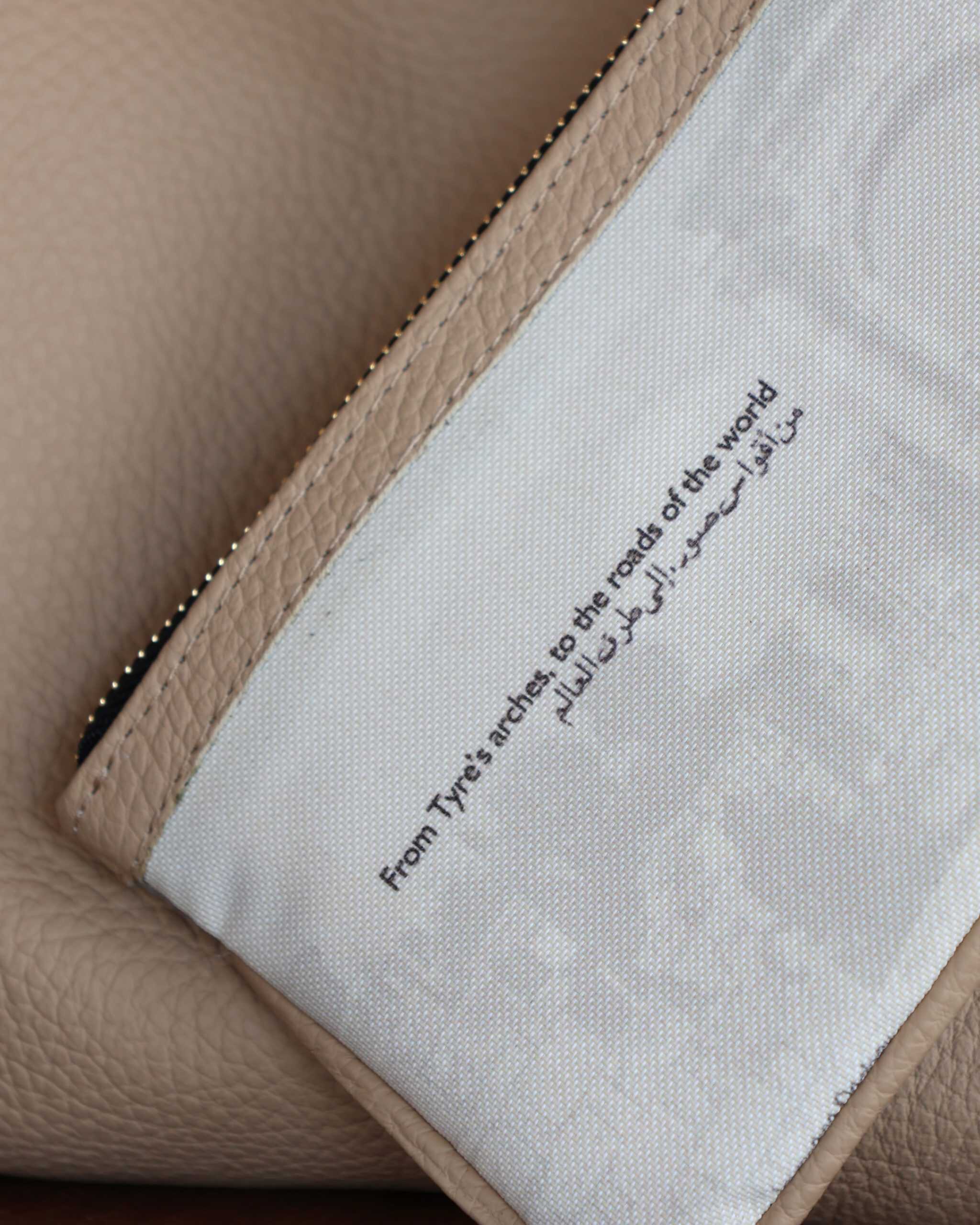 Named after the ancient coastal city of Sour (Tyre), this bag pays tribute to architectural heritage and the curving topography of a place where history and the sea meet.