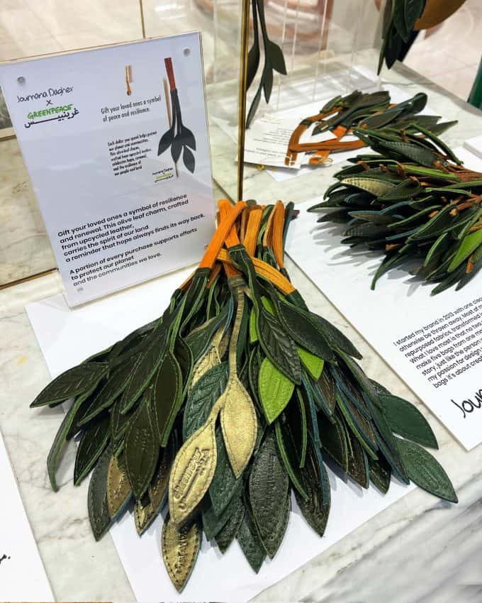 This olive-leaf charm is part of the official collaboration between Joumana Dagher and Greenpeace MENA a shared mission to protect the planet, preserve resources, and celebrate Lebanese craftsmanship.