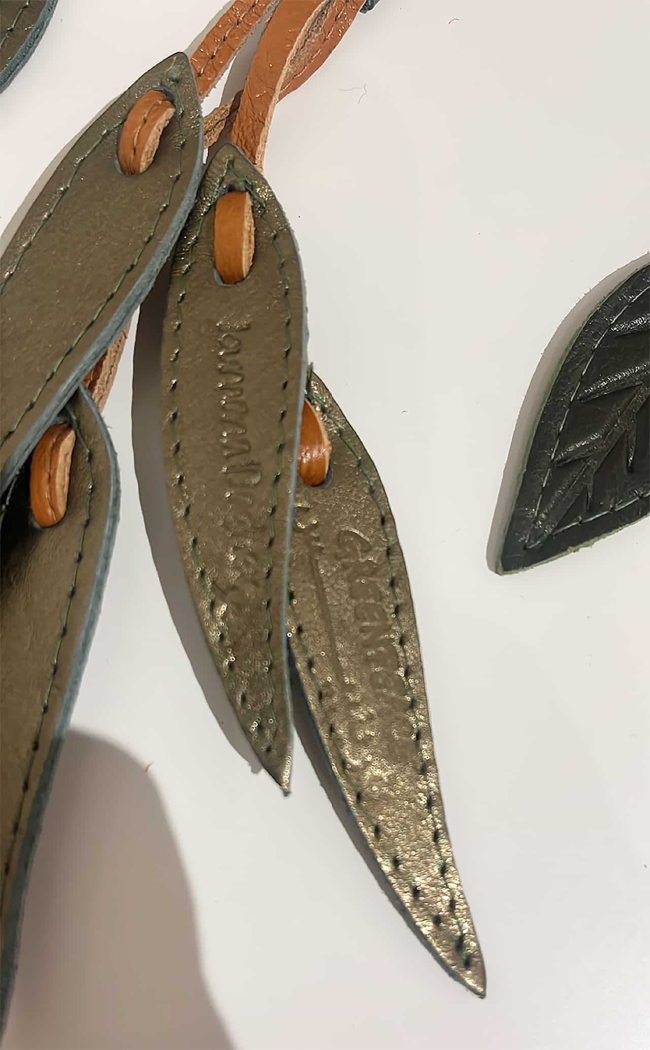 A handcrafted olive leaf charm made from upcycled leather, created in collaboration with Greenpeace. A symbol of peace, renewal, and resilience, designed to support environmental awareness and protect our communities and land.